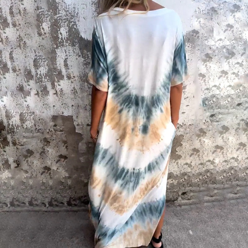 🎁 Rochie lungă cu decolteu în V cu imprimeu lejer