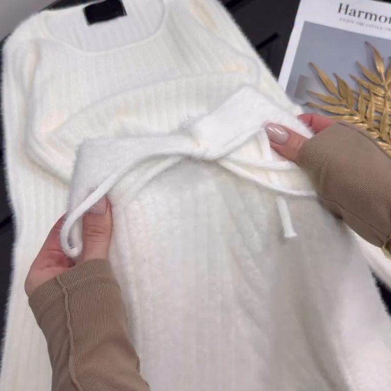 Set casual din 2 piese, pulover și pantaloni cu nervuri