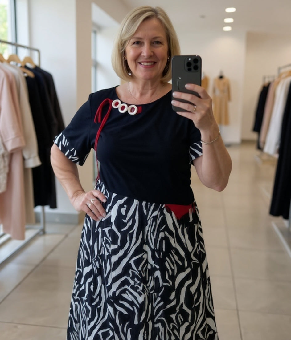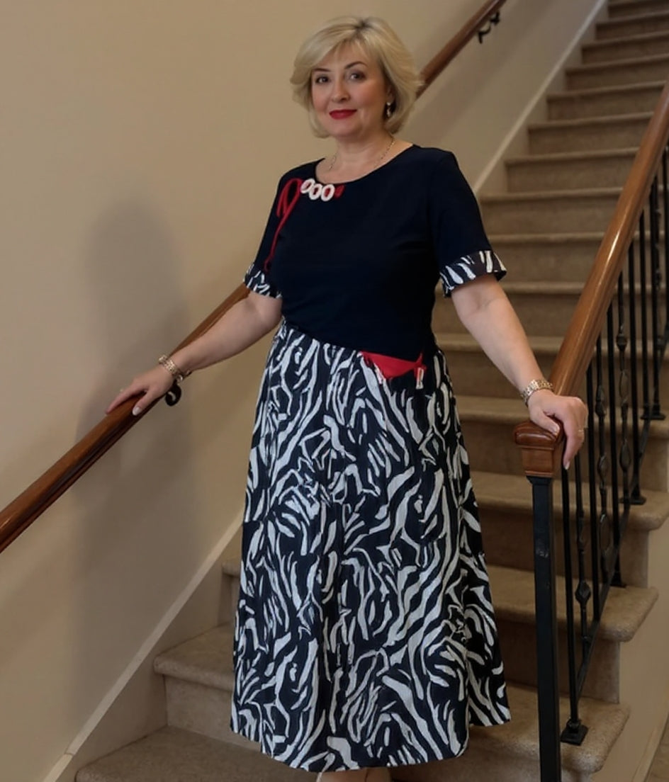 Imprimeu PATCHWORK STYLISH: Prezintă un patchwork încântător de modele clasice negre și cu imprimeu zebră îndrăzneț, îmbinând eleganța atemporală cu o atingere de fler modern.