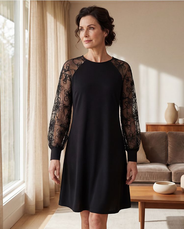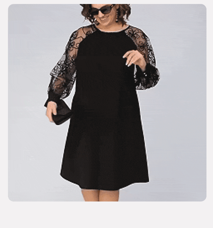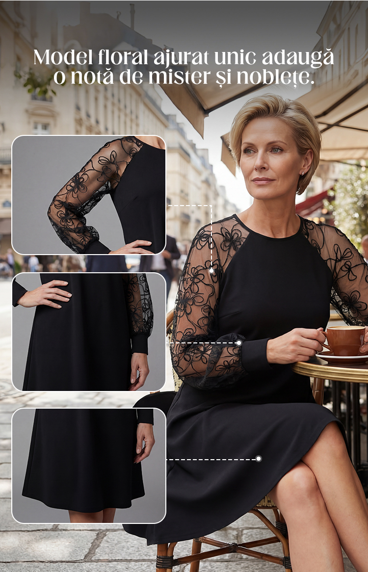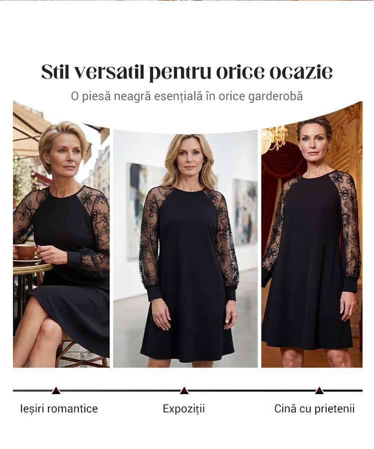 👗Rochie din dantelă cu mâneci lungi și decolteu rotund💖