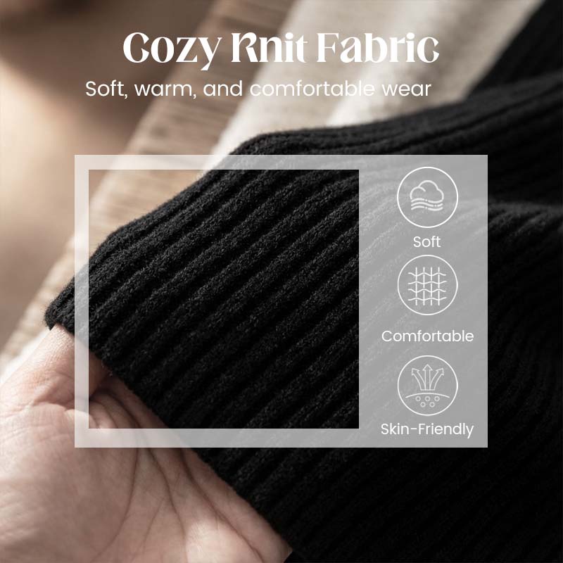 ȚESĂTURĂ MOALE DIN TRICOT - Confecționată dintr-un material tricotat de calitate superioară, această rochie oferă un confort excepțional și o elasticitate delicată. Te menține confortabilă și caldă, fiind alegerea ideală pentru toamnă și iarnă.