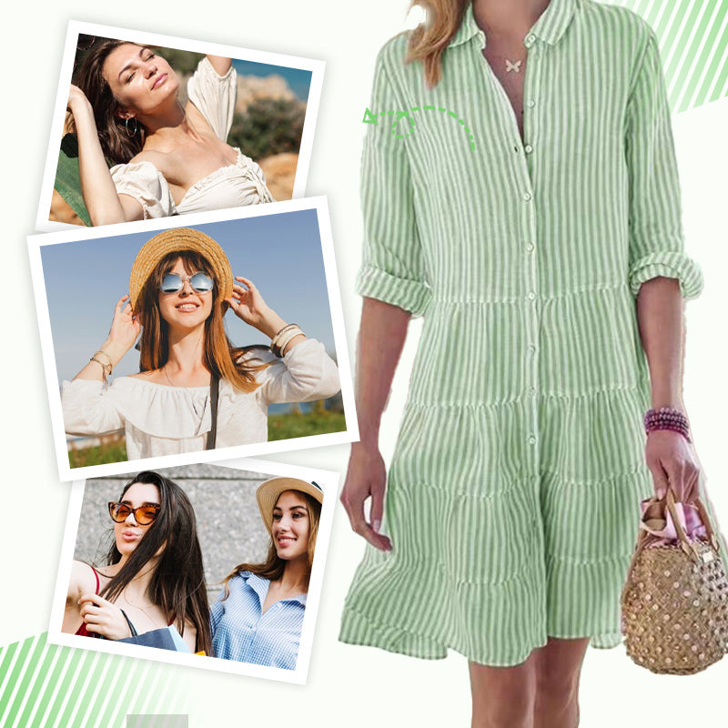 ELEGANCKI WZÓR W PIONOWE PASKI: Czyste, pionowe paski nie tylko optycznie wysmuklają sylwetkę, ale także nadają sukience wyrafinowany, ponadczasowy charakter, który łatwo przechodzi od pracy do weekendu.