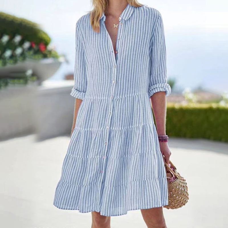 Zawartość opakowania: 1× Sukienka Koszulowa w Paski z Długim Rękawem dla Kobiet