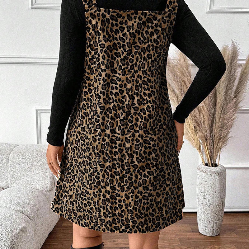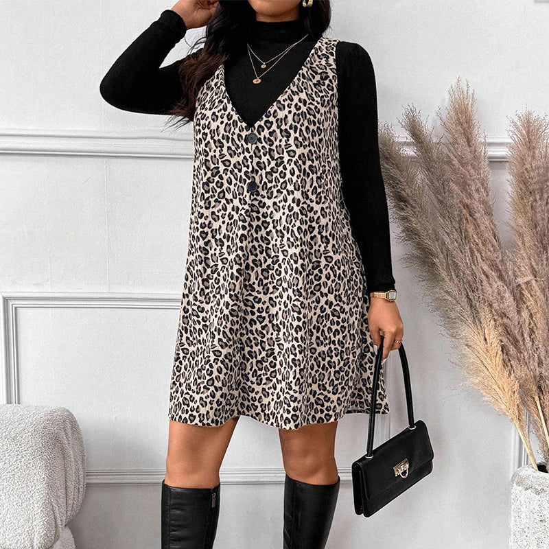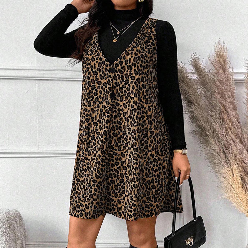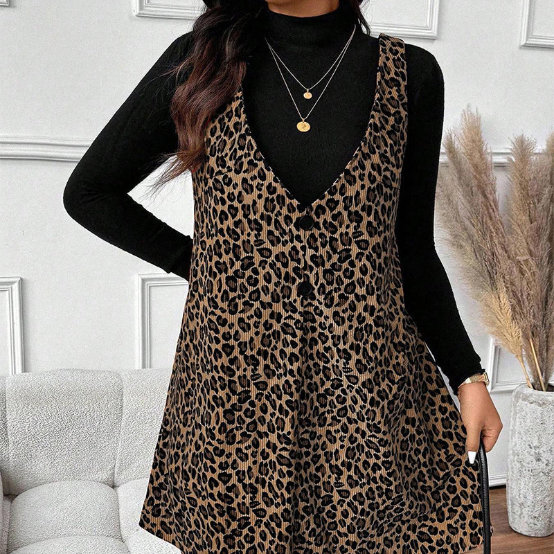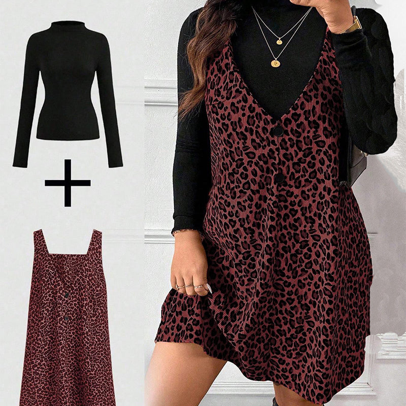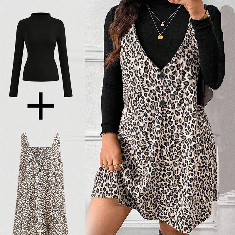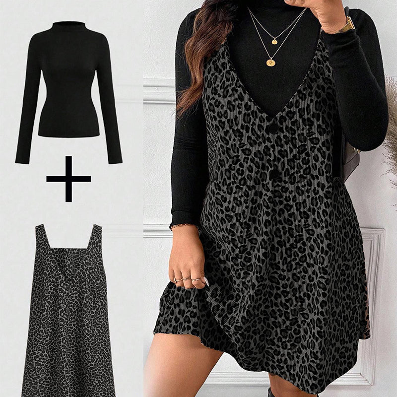 Set rochie și top cu imprimeu leopard, cu aspect stratificat
