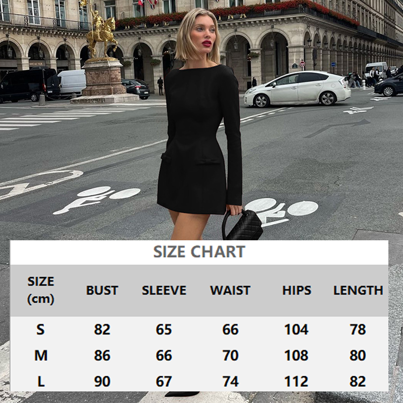 MÂNECI LUNGI RAFINATE - Mânecile lungi elegante oferă o acoperire stilată și fac din această rochie o alegere versatilă pentru sezonul de tranziție și ocazii mai formale. Mânecile echilibrează tivul scurt și conferă un aspect rafinat și elegant.