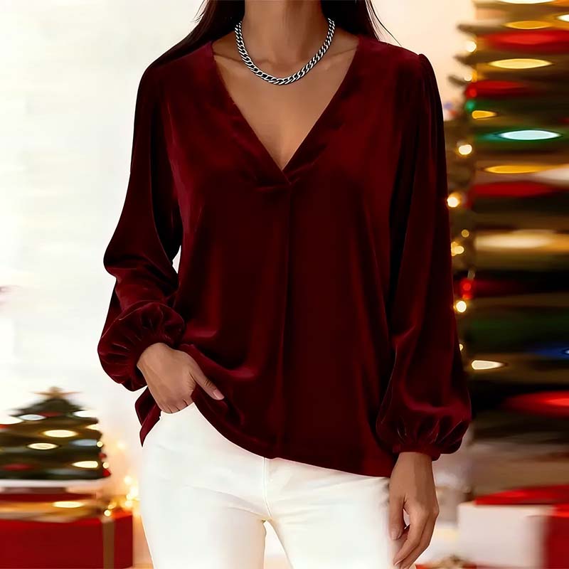 Bluză elegantă pentru femei, cu decolteu în V și mâneci lanternă