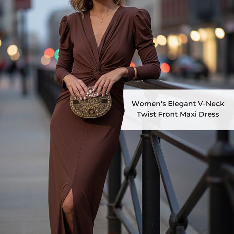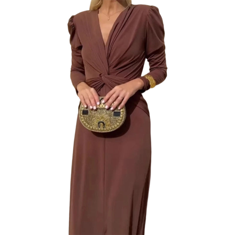 Rochie lungă elegantă pentru femei, cu decolteu în V și față răsucită