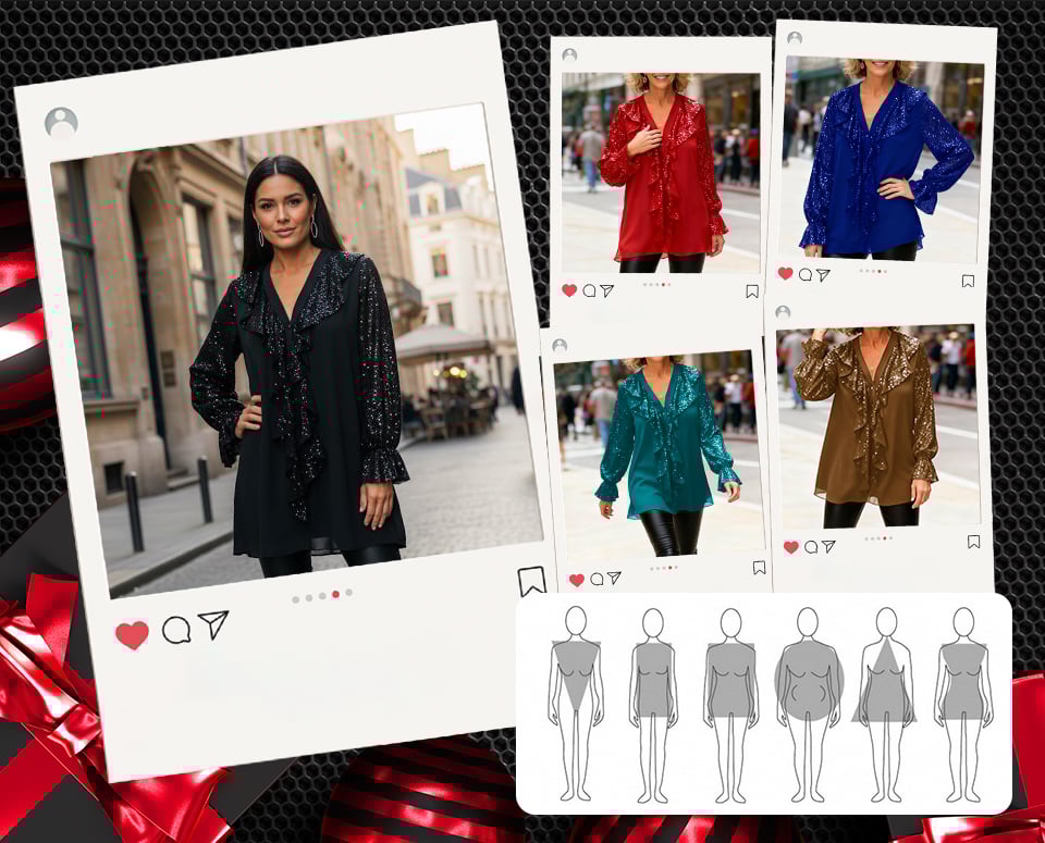 Ofertă limitată! Achiziționați această bluză esențială, cu mâneci strălucitoare cu paiete și un decolteu romantic în V cu volane. Obțineți instantaneu un look glamuros de sărbători înainte ca oferta să se încheie!